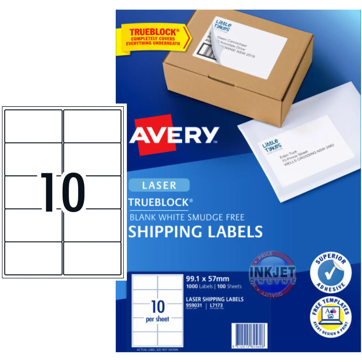 Get the quality you expect with genuine Avery Shipping Labels from Inkjet Online! We offer a wide selection of Avery Labels, ensuring you’ll find the perfect size for your printer. Enjoy the convenience of fast shipping with delivery straight to your door, no matter where you are in Australia – Adelaide, Canberra, Brisbane, Perth, Sydney, or Melbourne. Plus, with every purchase, you’ll earn reward points towards future discounts! Upgrade your printing experience with Avery Labels and our fast, reliable service.