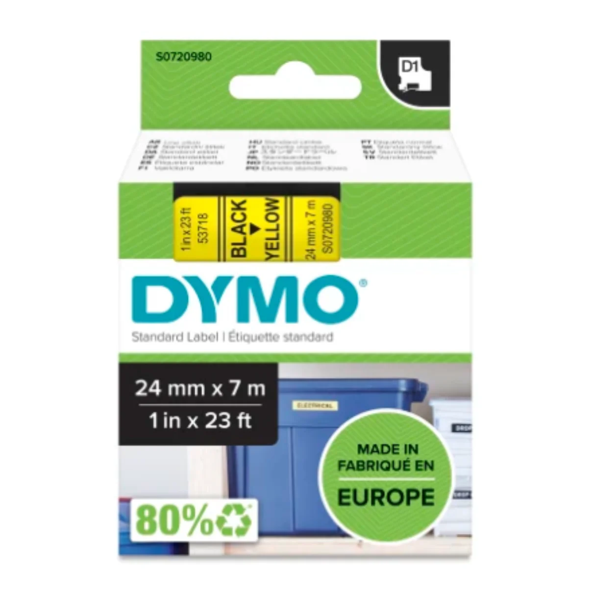 Dymo D1 Tape (24mm) Black on Yellow – Standard Label Tape (S0720980 / 53718)