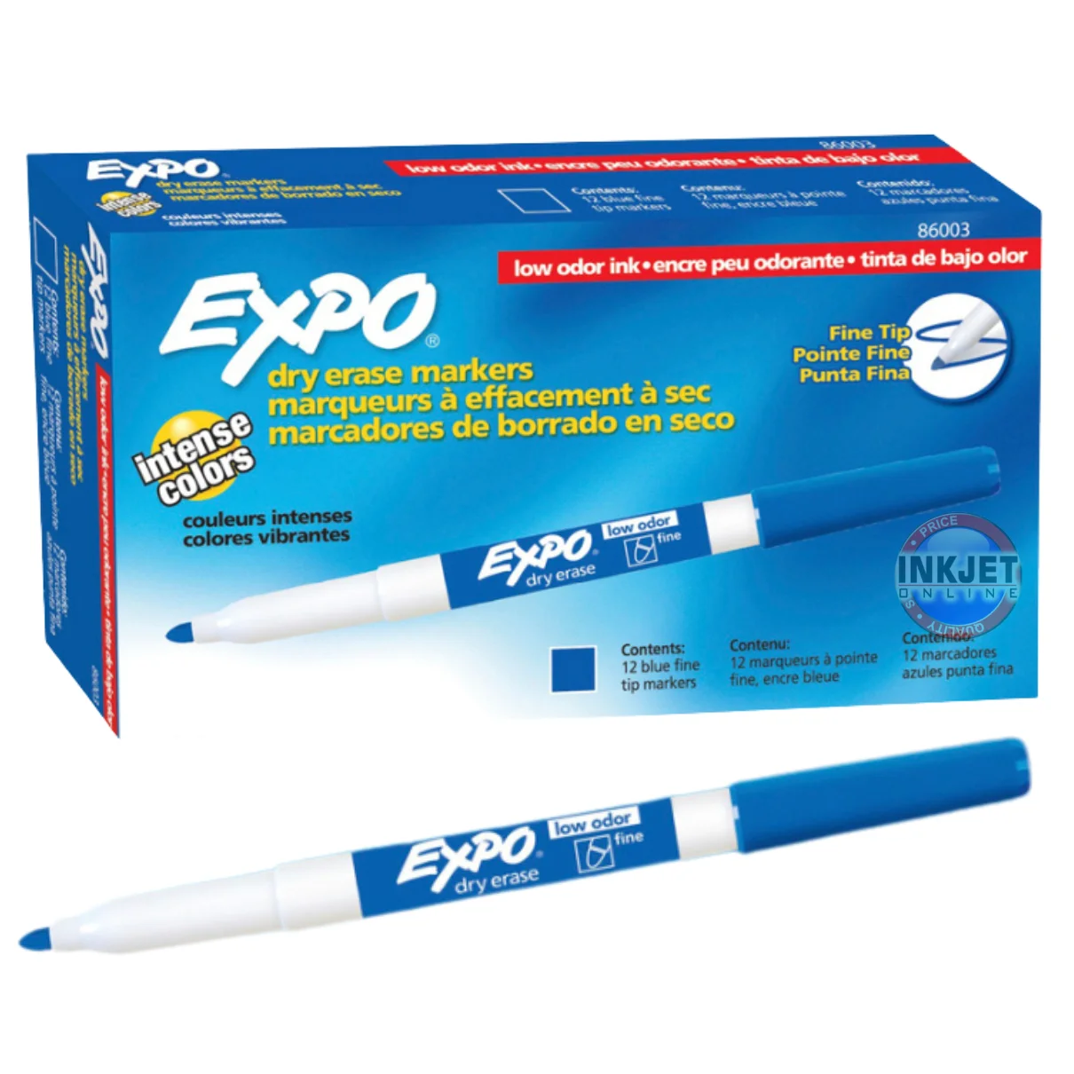 Expo Whiteboard Markers – Dry Erase, Fine Tip, Blue, Box of 12 (86003A)