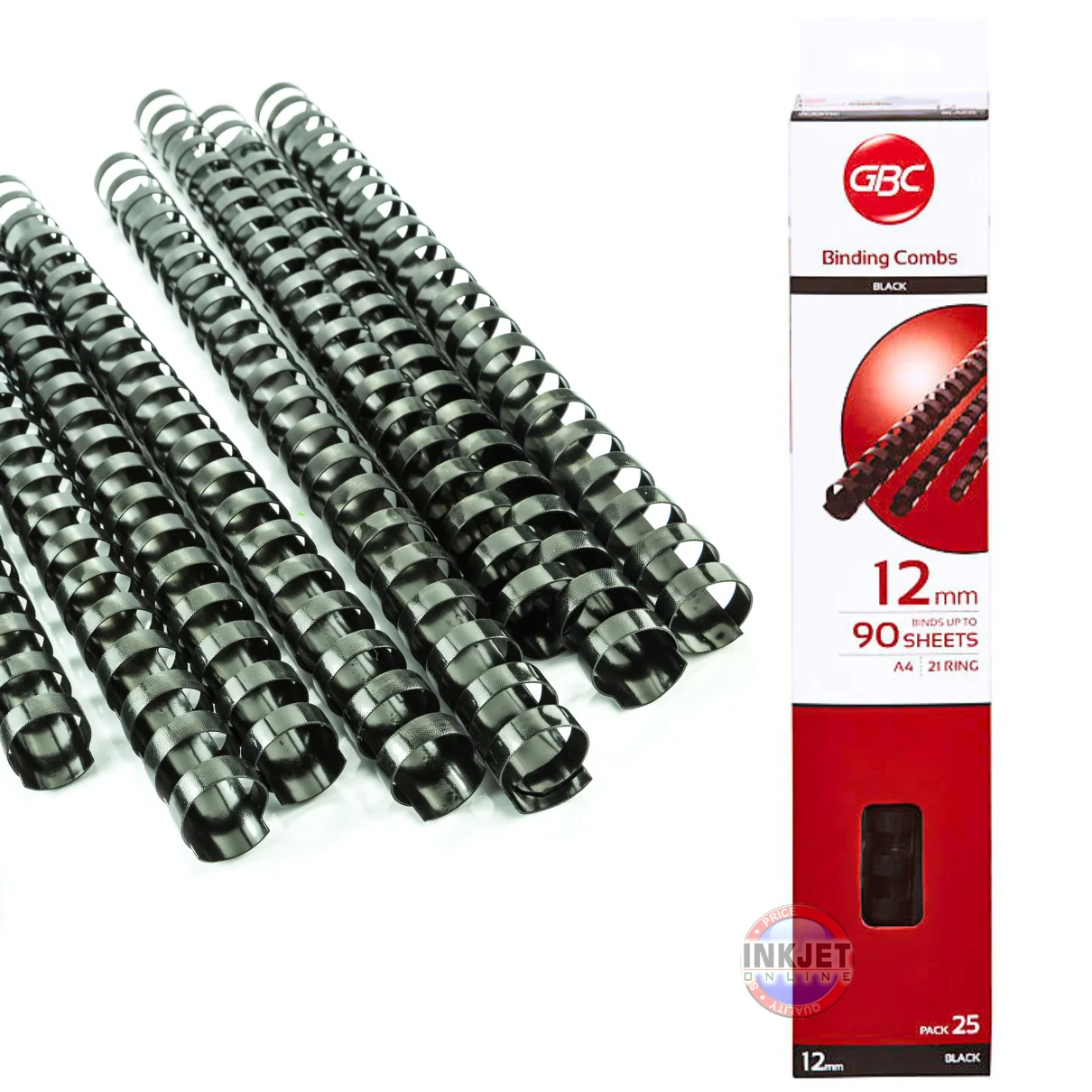 The GBC Binding Comb 12mm Black Pack of 25 is a reliable and professional solution for creating neatly bound documents. Designed for use with comb binding machines, these 12mm combs are ideal for reports, presentations, or manuals. The durable plastic construction ensures long-lasting binding, while the sleek black finish adds a polished, professional touch. Perfect for offices, schools, or home use, this pack of 25 offers great value and versatility for all your binding needs.