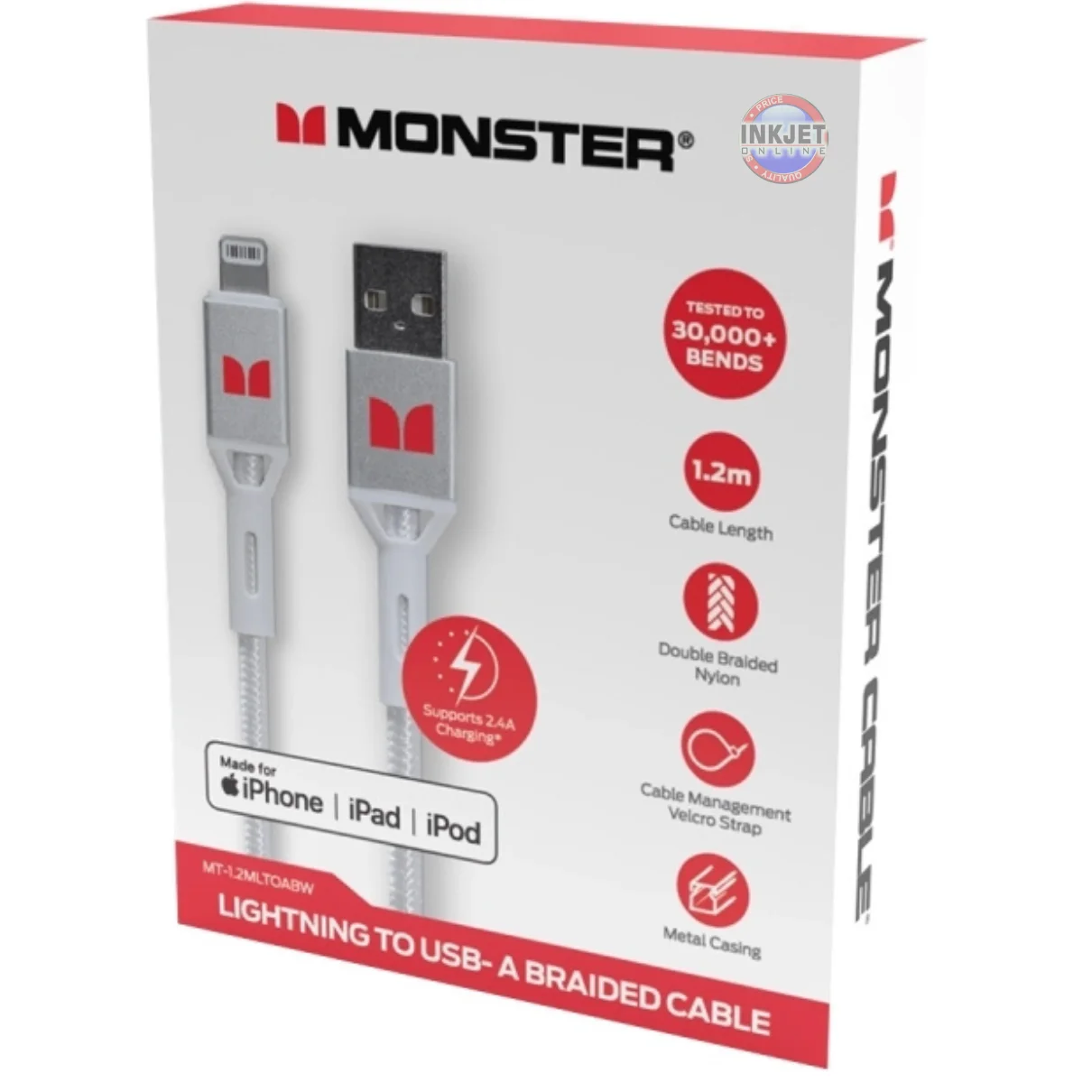 Be the first to review “Monster Lightning to USB-A Braided Cable (1.2m) White”