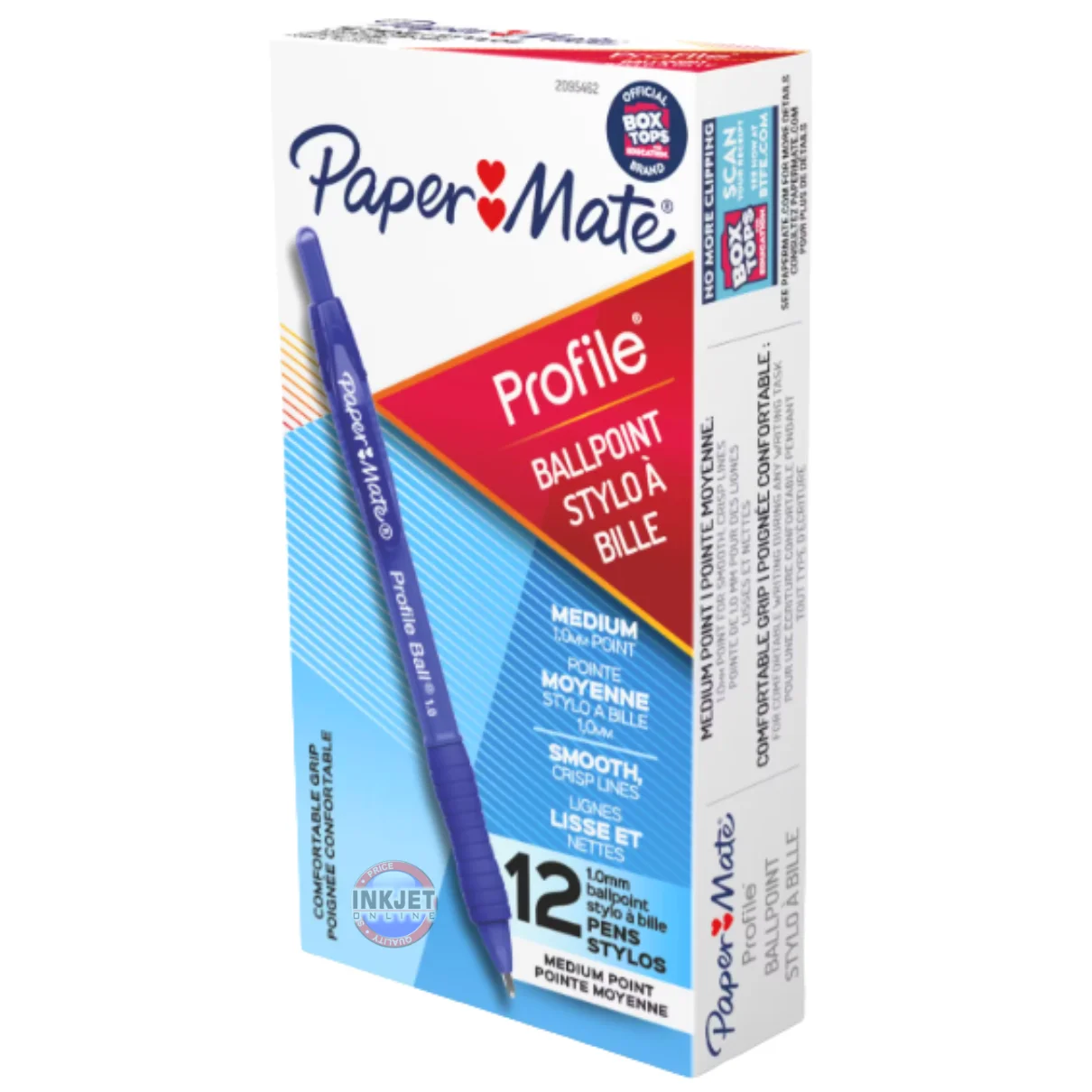 Papermate Profile Retractable Ballpoint Pens feature a soft rubber grip and bold, smooth ink for effortless everyday writing. The 1.0mm medium tip produces crisp blue lines with consistent ink flow, ideal for office documents, note-taking, or journaling. The retractable design and colour-matching barrel add convenience and style. Supplied in a handy box of 12 pens — perfect for work, school, or home stationery needs.