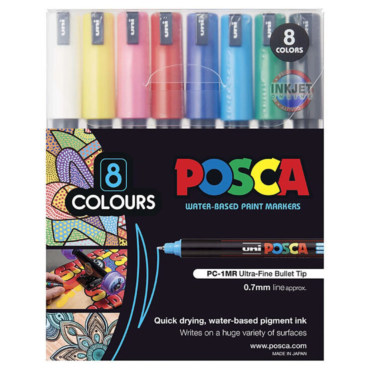 Posca PC-1MR Paint Marker Set – Ultra Fine Tip (Assorted Colours Pack of 8)