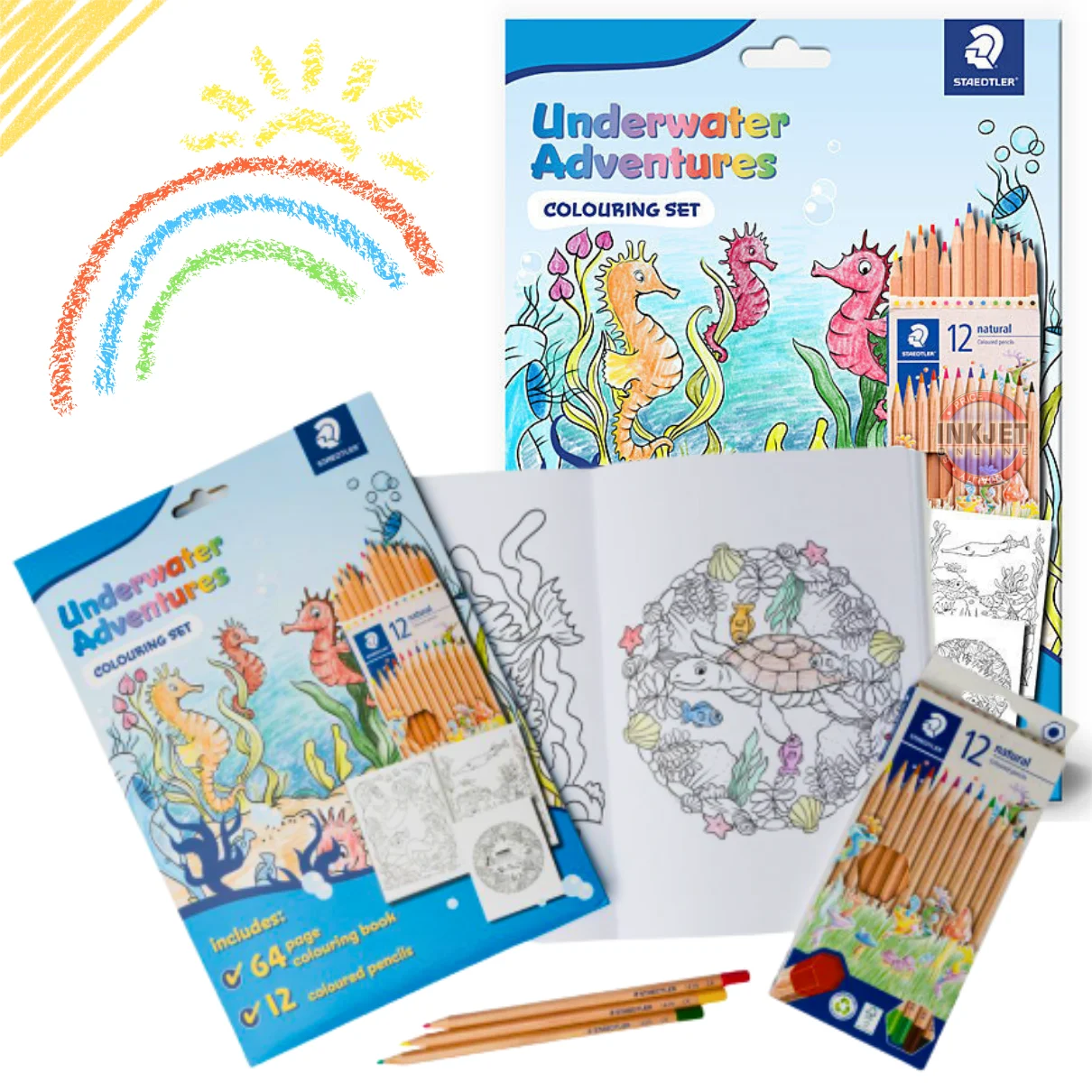 Compact and easy to carry, this colouring set is perfect for home use, travel, school holidays or as a thoughtful gift. With trusted Staedtler quality and an engaging aquatic theme, it’s a great choice for young artists and colouring enthusiasts alike.