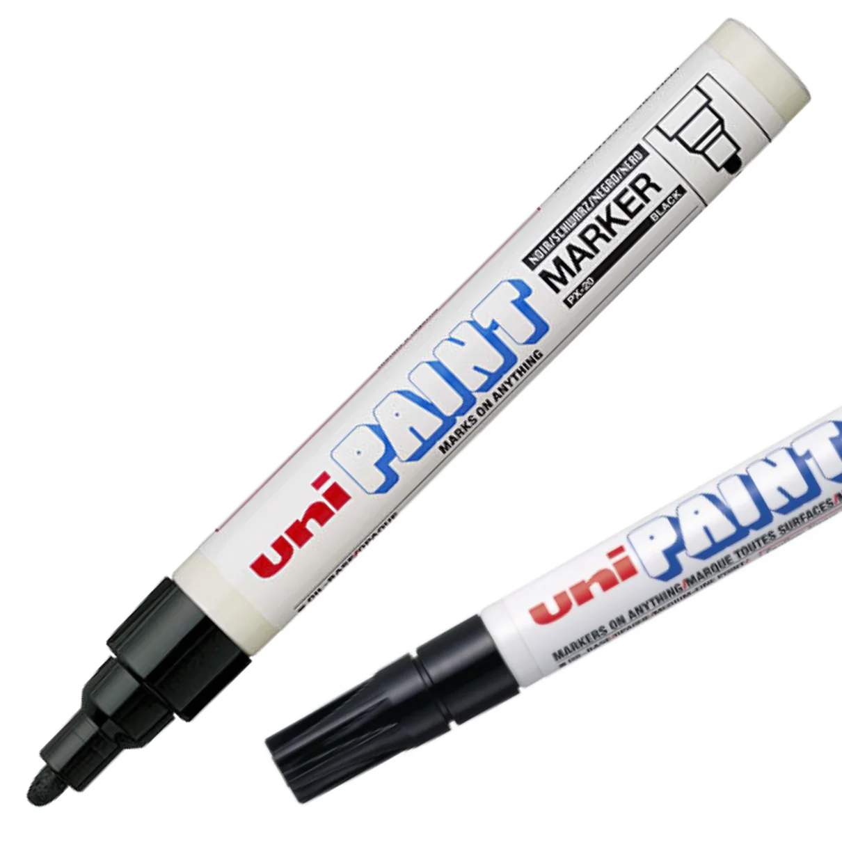 The Uni PX-20 Black Paint Marker is a high-quality oil-based permanent marker designed for strong, vivid results on almost any surface. Its bullet tip (2.2–2.8 mm) provides bold, consistent lines ideal for writing, marking, and artwork. Durable and fade-resistant, this marker is perfect for use in industrial, commercial, and creative environments alike.